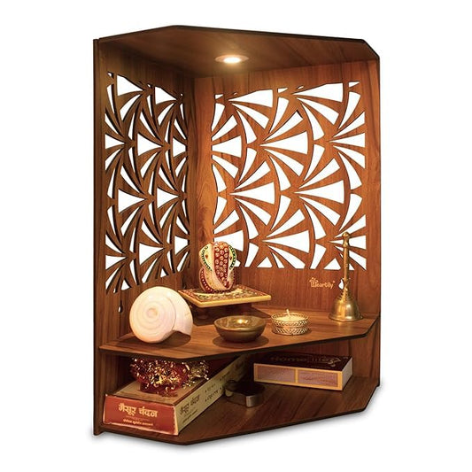 HNA GIFTING Beautiful Corner Wooden Pooja Stand Mandir for Home Temple for Office Puja Mandir for Home Wall with LED Spot Light Product (H- 17, L- 10, W-15 Inch)